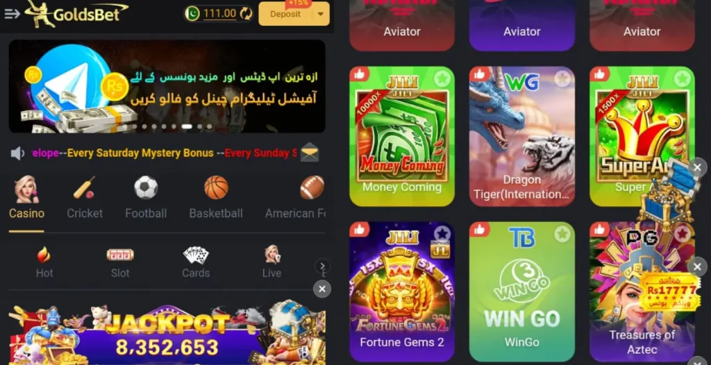 Golds Bet APK is a Pakistani online gaming site where customers can play casino games and win real money. Users can register and download the app, then deposit money using local facilities, and thereafter select from numerous casino-style games.